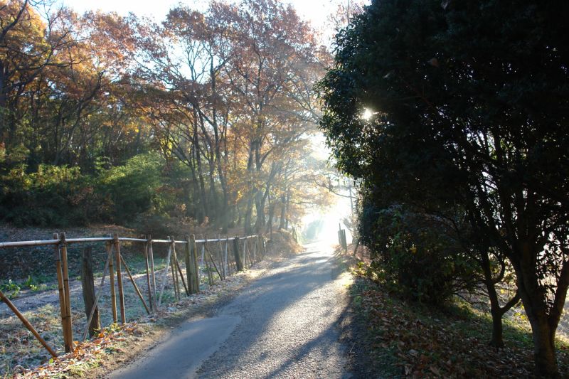 12月の夕方御堂山を通り過ぎる静かなきれいな風景
