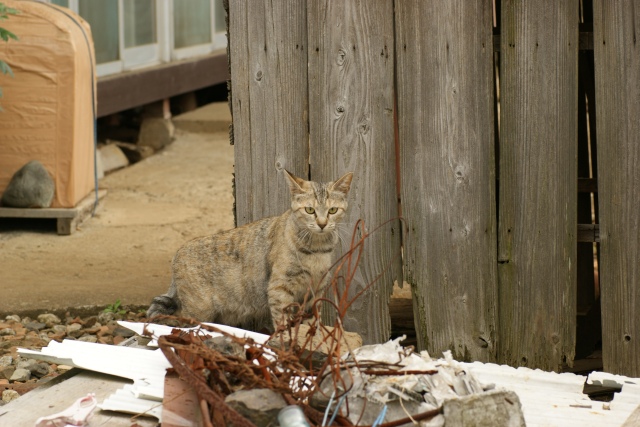 自動車修理のおじさんに聞いたら、野良猫に餌をやるのを禁止しているのだそうだ。 猫もどこかに移ったらしい。