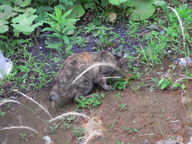 鶴見川の川岸の側で自動車の修理をしていたおじさんが、野良の面倒を見ていた。 小柄な親猫と子猫が3匹、そのうちおじさんは100メートルほど離れた場所に移ったが猫は何遍連れてきても逃げてしまうという。